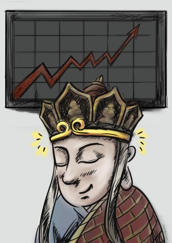 赏析:作品紧扣人物性格特点,爱念经的唐僧给自己戴上紧箍咒,巧妙彰显理性投资理念。