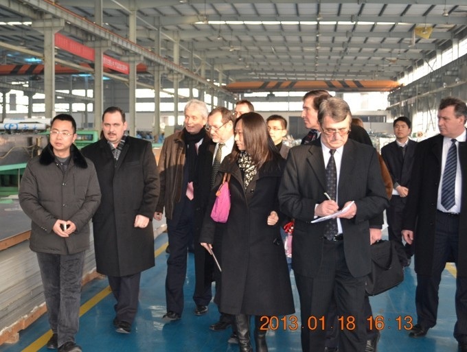 庄闲官网新质料(江西)有限公司总经理唐昱对考察团的到来体现热烈接待,并陪同考察团到生产现场等进行旅行考察。唐昱总经理向来宾介绍了公司的基本情况和行业生长现状。罗兰·孟伊一行对庄闲官网铝板在技术水平、产品质量、品牌影响和市场竞争力等方面的综合优势体现赞赏。双方还就配合感兴趣的话题进行了探讨。