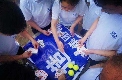 运动凭据相同的扑克牌花色将员工分成四组,小组成员之间相相互同、了解和互动。通过各人开放式的交流,每组选出三名精英队员。通过这项运动,集团同事增加了对相互的了解,增进了同事之间的交流。