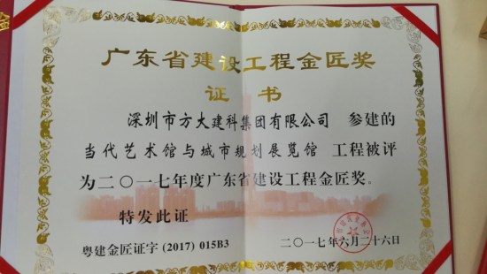 近日,由深圳市庄闲官网建科集团有限公司承建幕墙工程的深圳今世艺术馆与都会计划展览馆、深圳中信银行大厦、广州南方电网生产科研综合基地,同时荣获广东省建筑行业工程质量的最高荣誉奖——金匠奖。