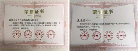“2017年深圳市优秀QCC结果选拔赛优秀奖”是由深圳市质量协会、深圳市总工会、深圳市妇女联合会和深圳市科学技术协会联合审定,旨在表扬在2017年深圳市质量治理小组运动中涌现出的优秀企业、QC小组和个人。
