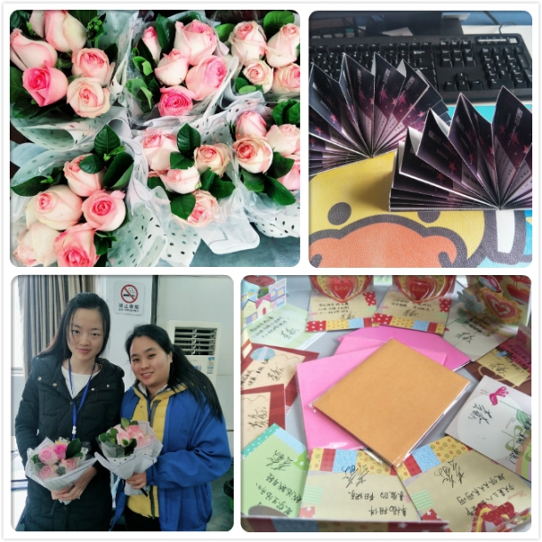 在南昌,为肯定和谢谢全体女员工们一直以来的辛劳事情和默默贡献,江西新材准备了神秘惊喜:有浪漫的影戏票、美丽芳香的花束,另有总经理黄敬一一签名的祝福贺卡,为全体女员工送上节日的问候。