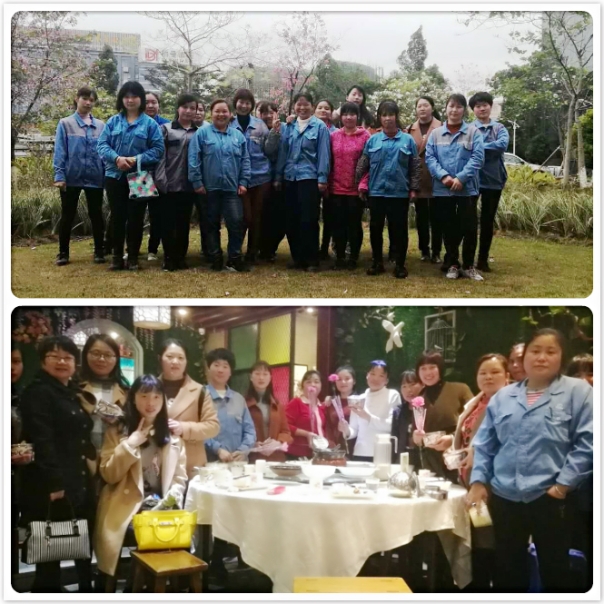 在东莞,因生产较忙,女员工们放弃休息,自愿在岗事情。东莞公司为女员工们准备的精致的礼物,晚上以一顿丰富的晚餐庆祝此次“女神节”运动。