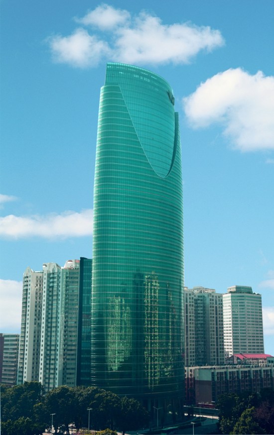 建筑顶部用一道月牙形的抛物线进行划分,并在质料上接纳透明灰色中空LOW-E玻璃幕墙,形同一颗茁壮生长的植物在顶端冒出一株新芽。曲线型的设计不是为了将设计庞大化,而是在细节上设计出一个新的优美,温和的形体,能够在视觉上和美学上都实现永恒长期。