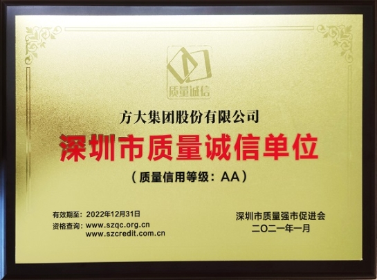 近日,深圳市质量强市增进会宣布了质量诚信(示范)单位认命名单,庄闲官网集团获得“深圳市质量诚信单位”认证。